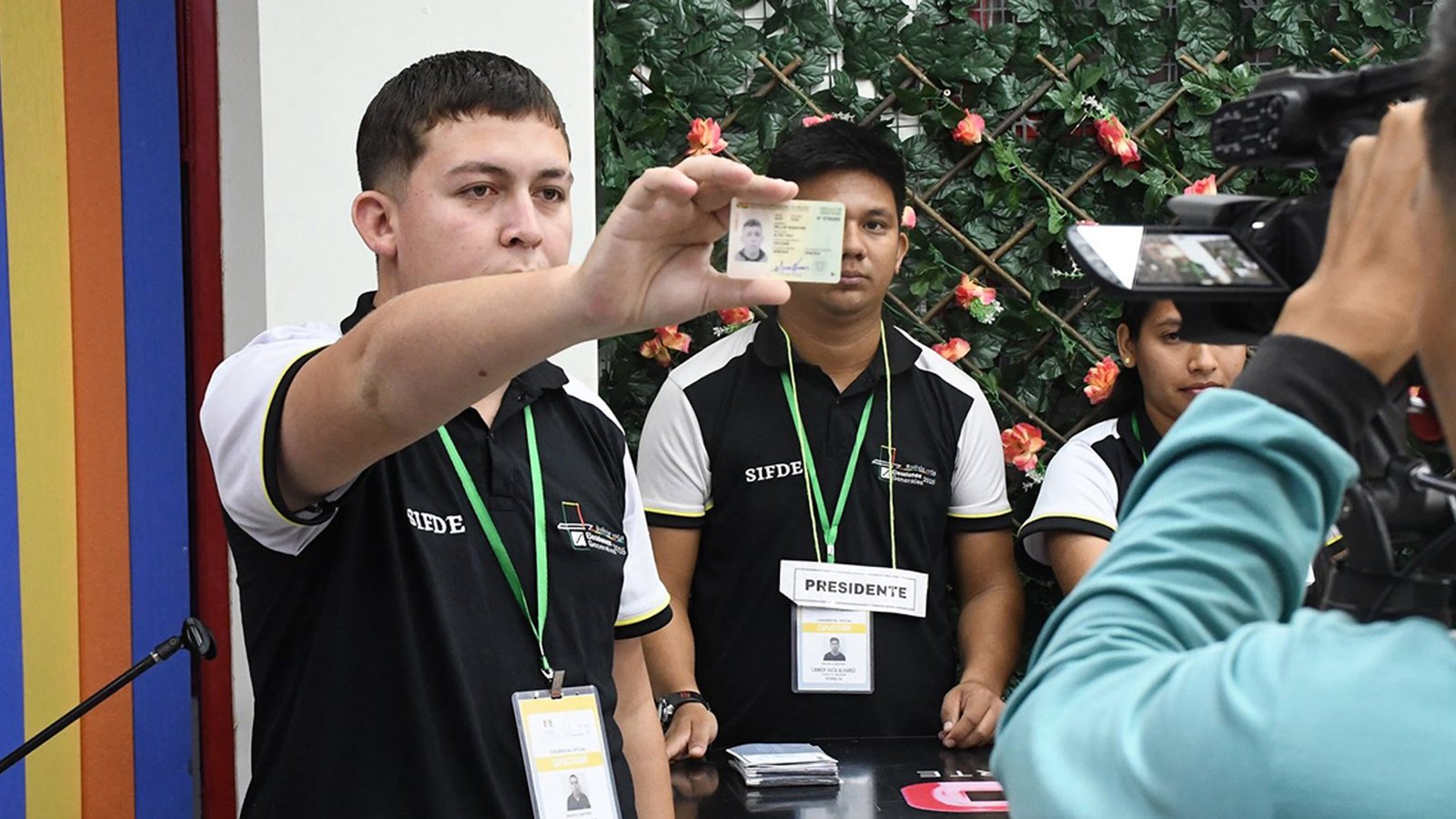 Para el procedimiento de votación, el elector entregará su documento de identidad al presidente de la mesa.