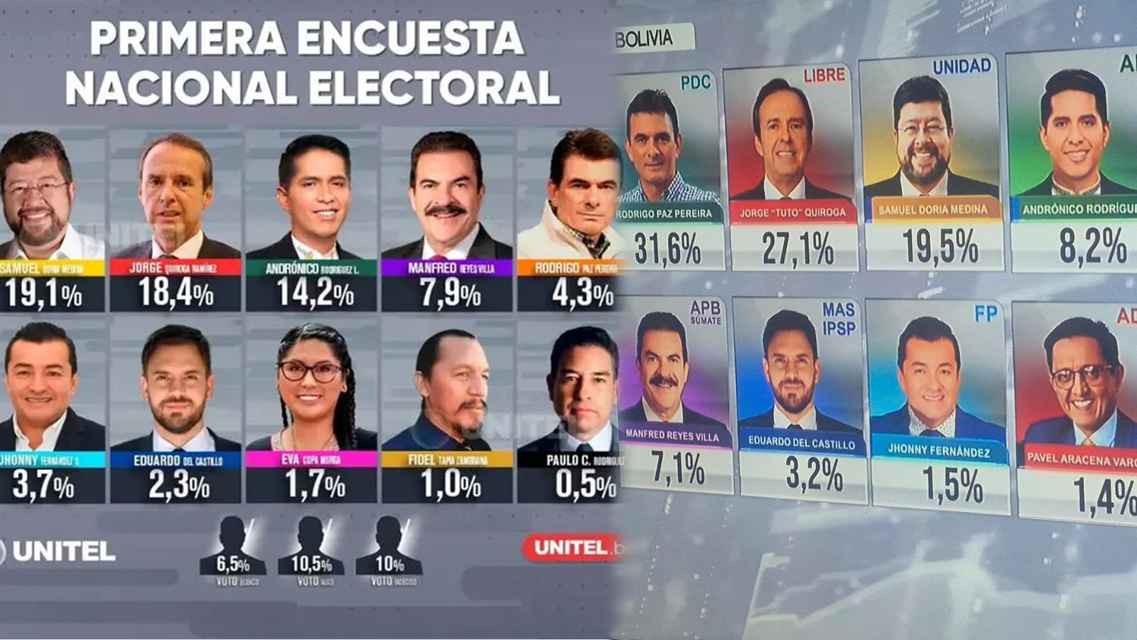 En la encuesta de Ipsos Ciesmori, Doria Medina obtuvo 21,2% y Quiroga un 20%. El senador opositor Rodrigo Paz Pereira aparecía tercero con 8,3%.