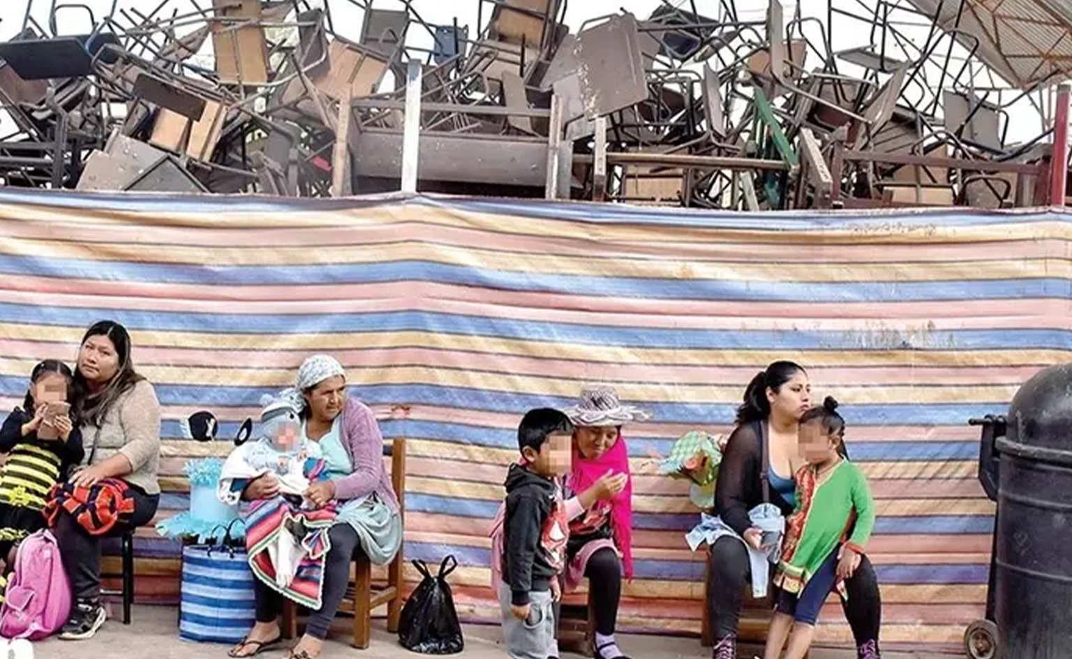 Mientras tanto, los niños continúan sus clases en condiciones adversas, usando espacios limitados y adaptándose como pueden para continuar con su educación.