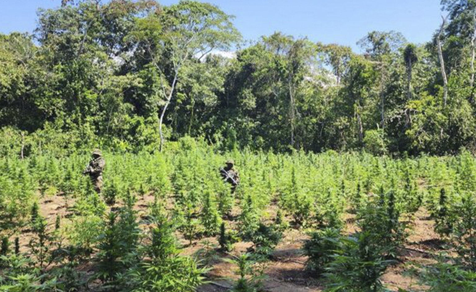 Yapacaní, Santa Cruz, 8 de septiembre de 2025.– La Fuerza Especial de Lucha Contra el Narcotráfico (FELCN), mediante la Unidad Móvil de Patrullaje Rural (Umopar), erradicó e incineró 18 toneladas de marihuana en estado natural en la comunidad de San Isidro, en el municipio de Yapacaní.