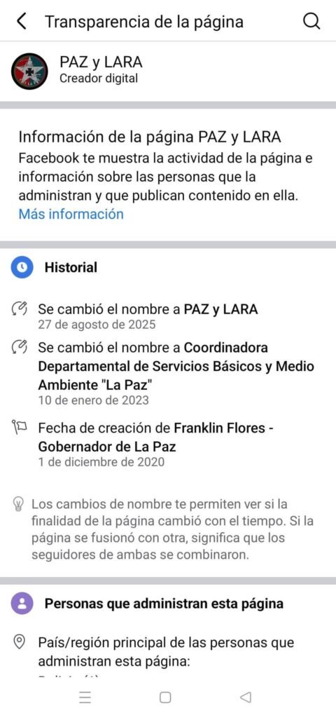 Usuarios alertan que estos cambios afectarían la percepción pública al mostrar un giro inesperado en la línea política de estas páginas, que ahora serían administradas por seguidores del binomio del Partido Demócrata Cristiano (PDC). La denuncia va acompañada de capturas de pantalla que, según se indica, revelan que estas páginas mantienen su base original pero ahora promueven a Lara y Paz como la “continuidad del MAS”.