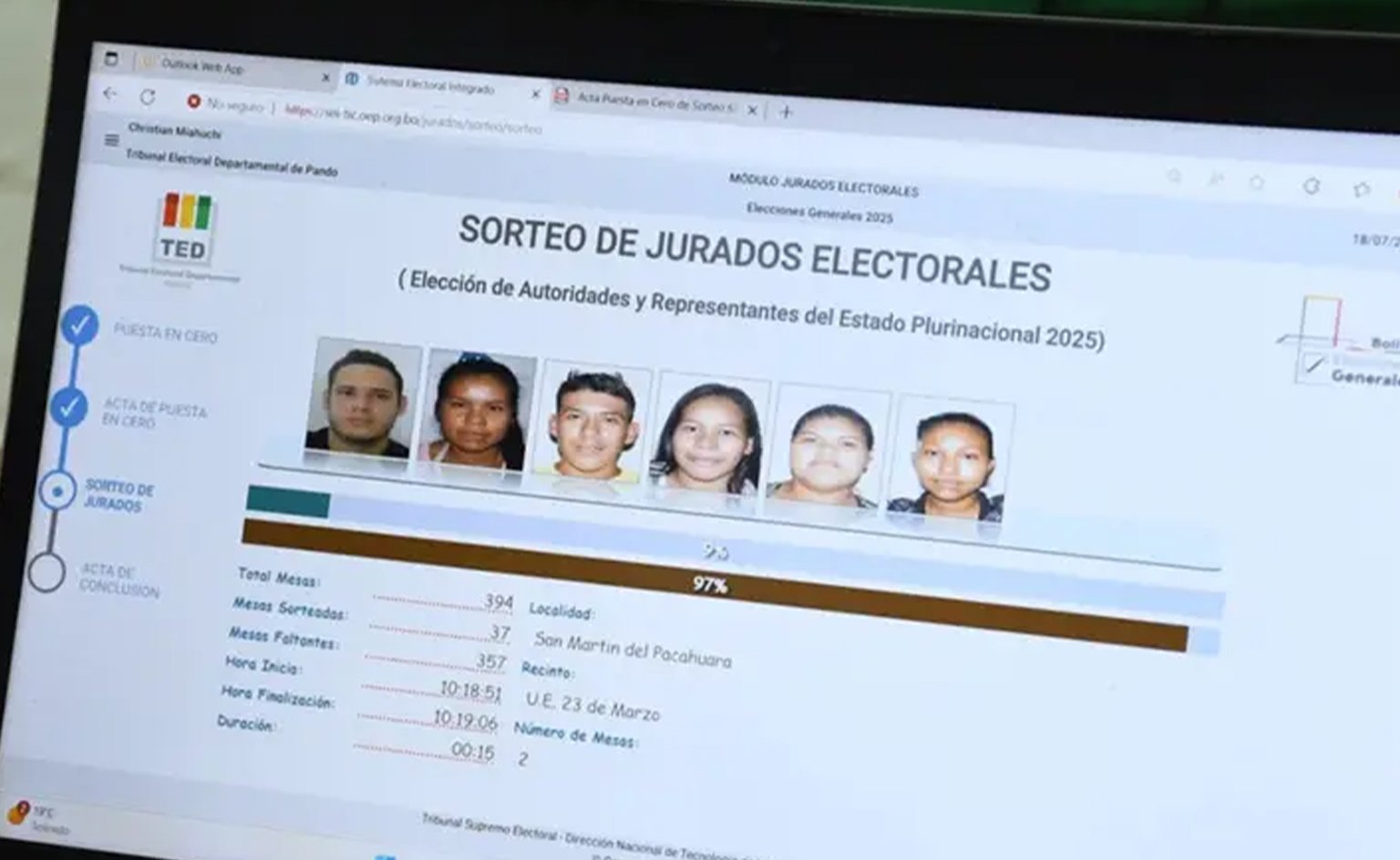 La Paz, 19 de septiembre de 2025.- El Tribunal Supremo Electoral (TSE) informó que la lista oficial con los más de 211.000 jurados electorales para la segunda vuelta será publicada este domingo 21 de septiembre. El sorteo que definirá a los jurados se realizará este viernes 19 de septiembre.