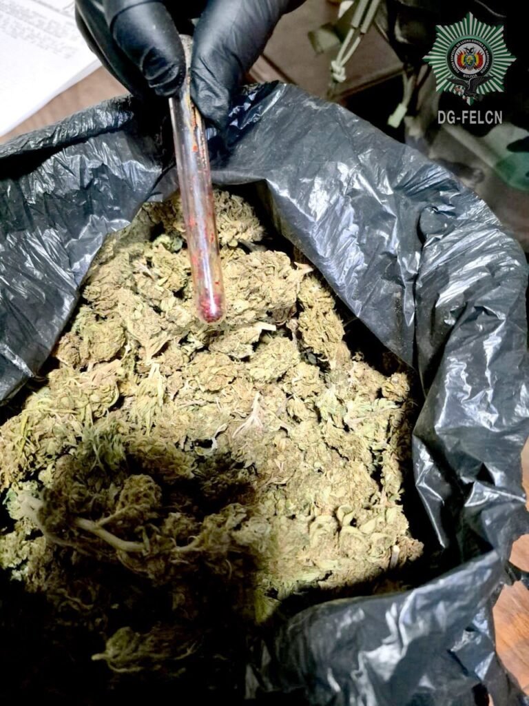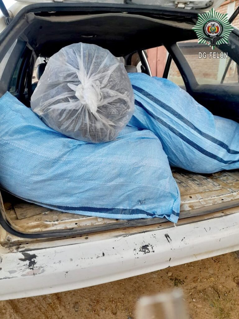 Sucre, 6 de octubre de 2025 – La Fuerza Especial de Lucha Contra el Narcotráfico (FELCN) informó que, durante un operativo de control en la avenida Washington de la ciudad de Sucre, interceptó un vehículo que transportaba una importante cantidad de marihuana. En el interior del automotor, los efectivos policiales hallaron tres bolsas de yute que contenían más de 32 bolsas negras con el estupefaciente.