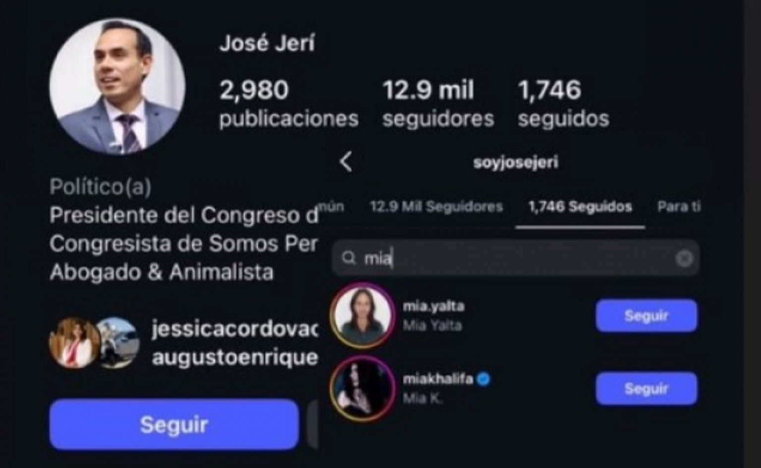 Según un reporte del diario El Tiempo y confirmado por medios internacionales como BBC y CNN, se descubrió que Jerí seguía cuentas de contenido sexual explícito en Instagram, incluyendo perfiles de la plataforma pornográfica Brazzers y de modelos. Tras asumir el cargo, eliminó varios de estos seguidores, pero capturas de pantalla ya se habían viralizado.
