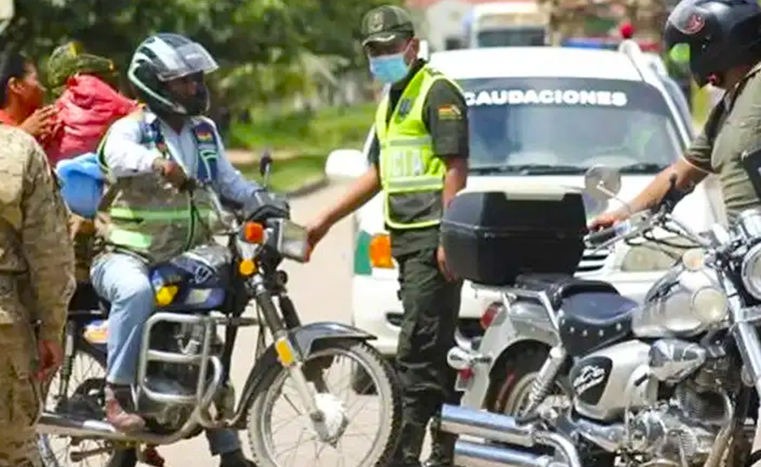 Exentos de portar permisos de circulación estarán notarios y funcionarios electorales acreditados, Policía Boliviana y Fuerzas Armadas, bomberos, ambulancias públicas y privadas, vehículos de emergencia municipal y medios de comunicación debidamente acreditados.